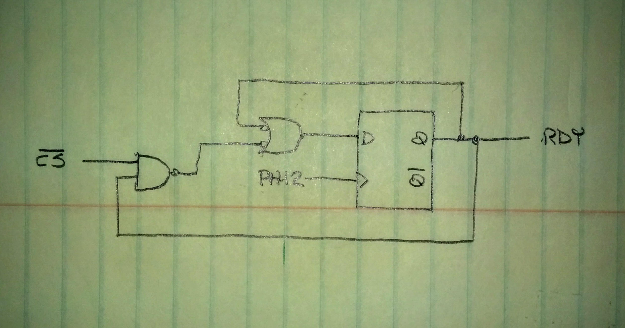 The "rdy" logic output will be open drain in order to drive the 65c02 RDY line.