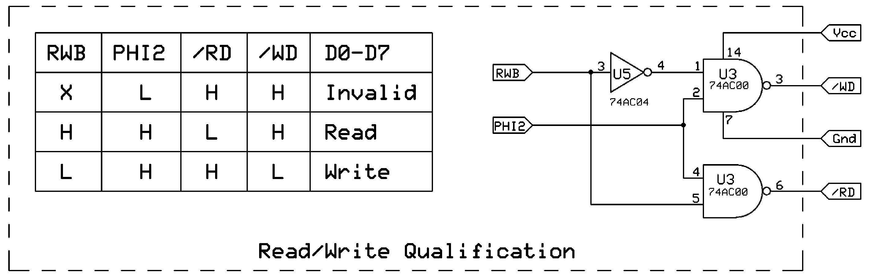 Note that Ø2 qualification of read/write accesses applies only to non-65xx devices. 65xx devices should have their RWB inputs directly connected to the microprocessor's RWB output.