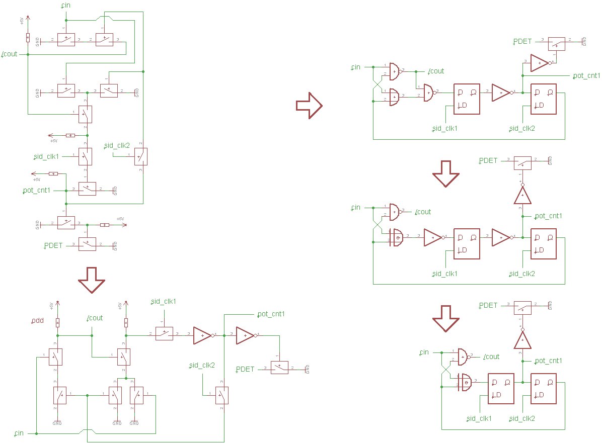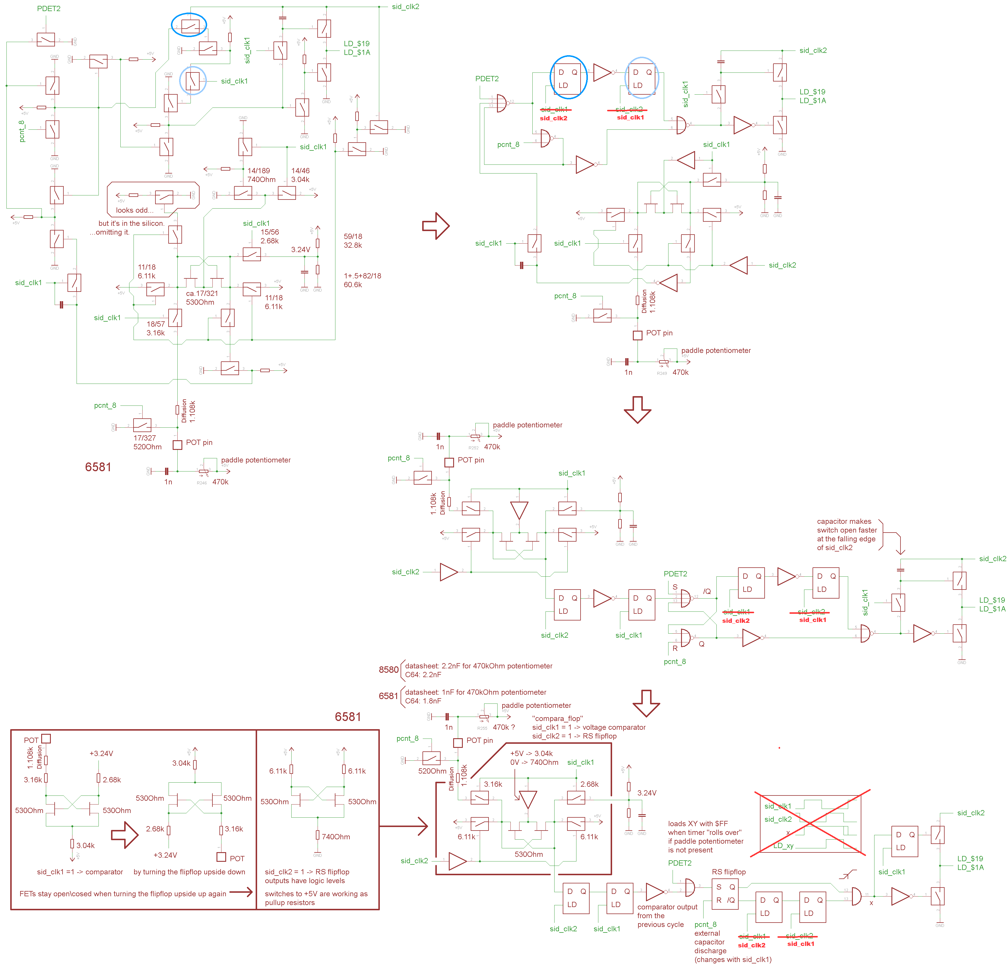 Those two FETs working as a voltage comparator during sid_clk1 =1