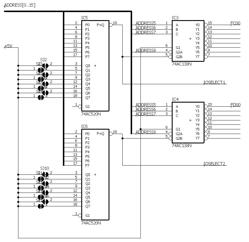IO page 2 at FD00 thru an ac138 for 8 IO's - 0 or 1 WS (again jumpered)