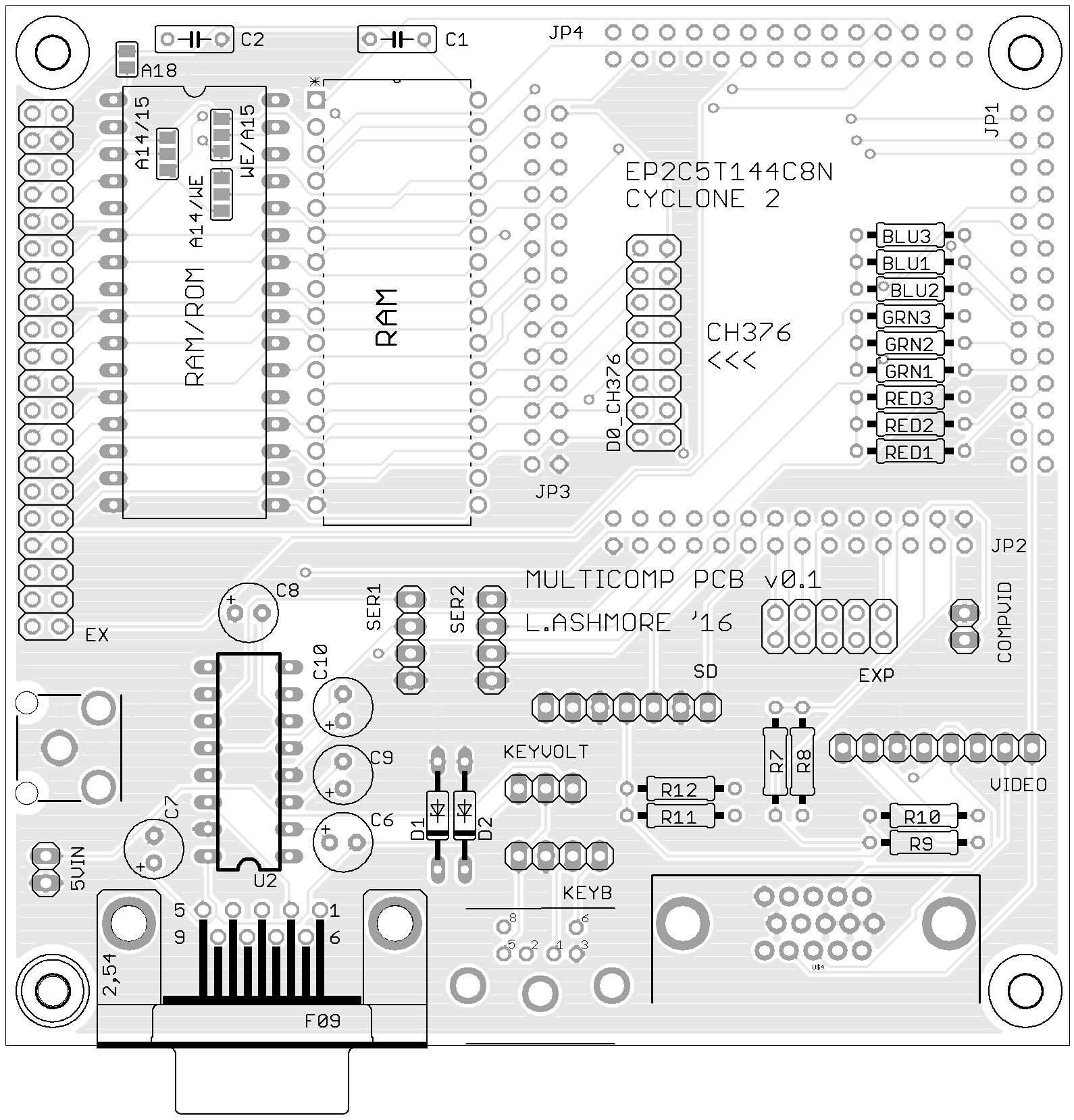 Multicom bits ie 2off serial . Sd card . Comp / vga video . Ps2 keyboard