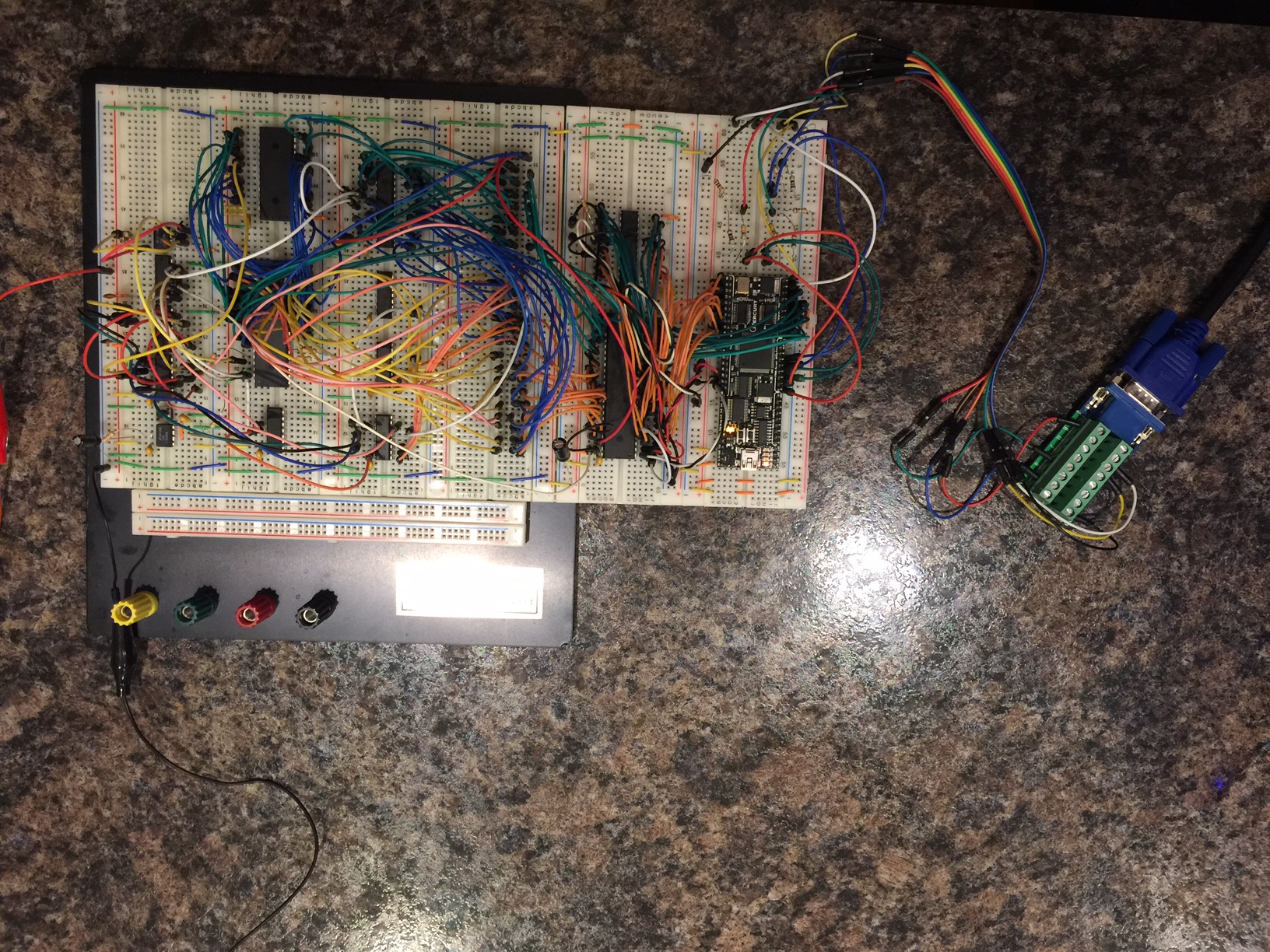In the middle is the address bus and data bus (I know im gonna get hate for doing this on a breadboard, but hey - it's what i had