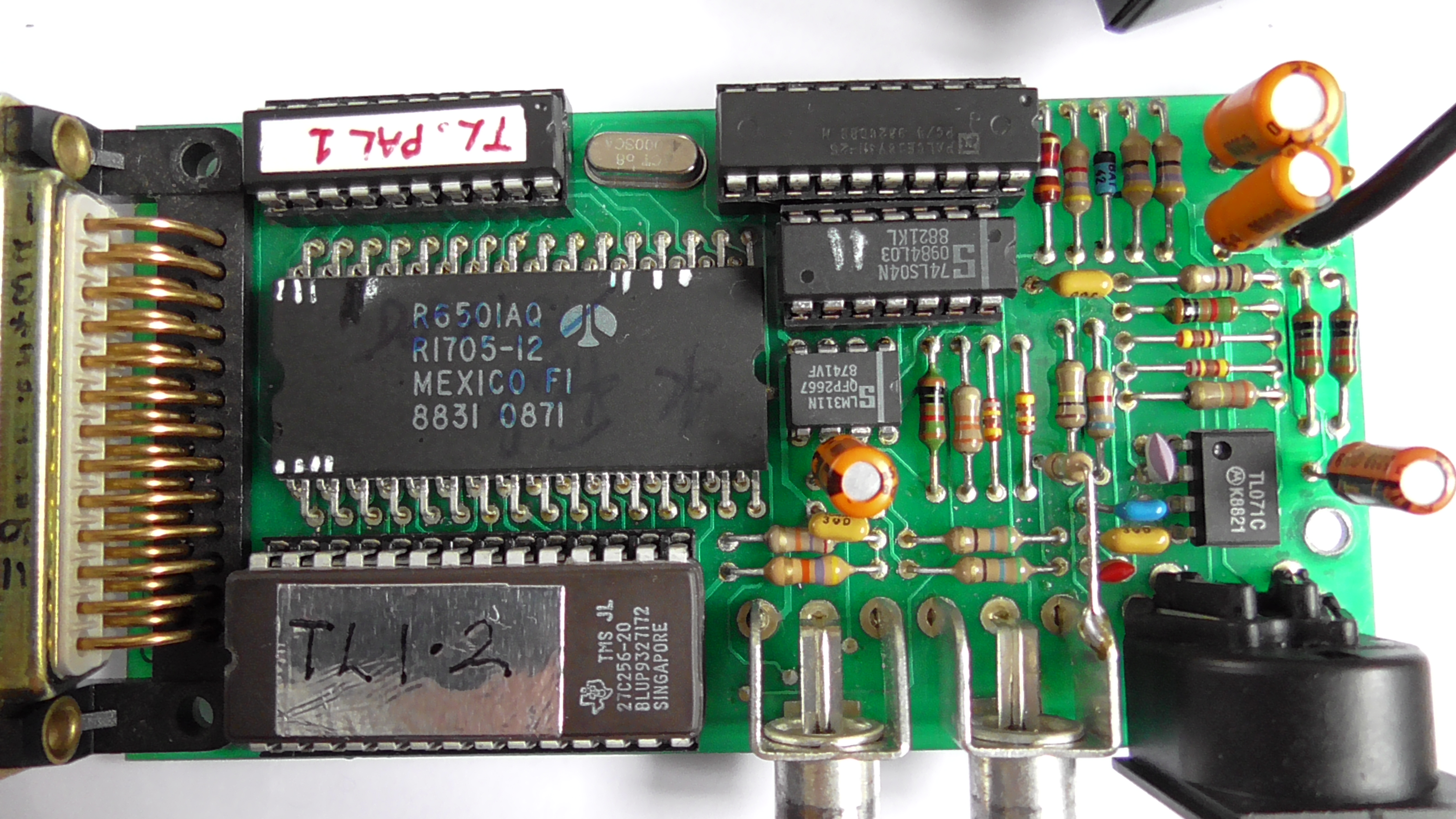 Inside there are 2 x protected PAL16R8 devices doing some counting etc to decode the bi-phase signal into clock and data 1's and 0's. It's taken me about 3 months to reverse engineer those 2 PAL chips with my HP 1661 and ABI Boardmaster 4000 so I might as well go the whole hog and see what the rest of it is doing :-). I'm feeling confident for a change.