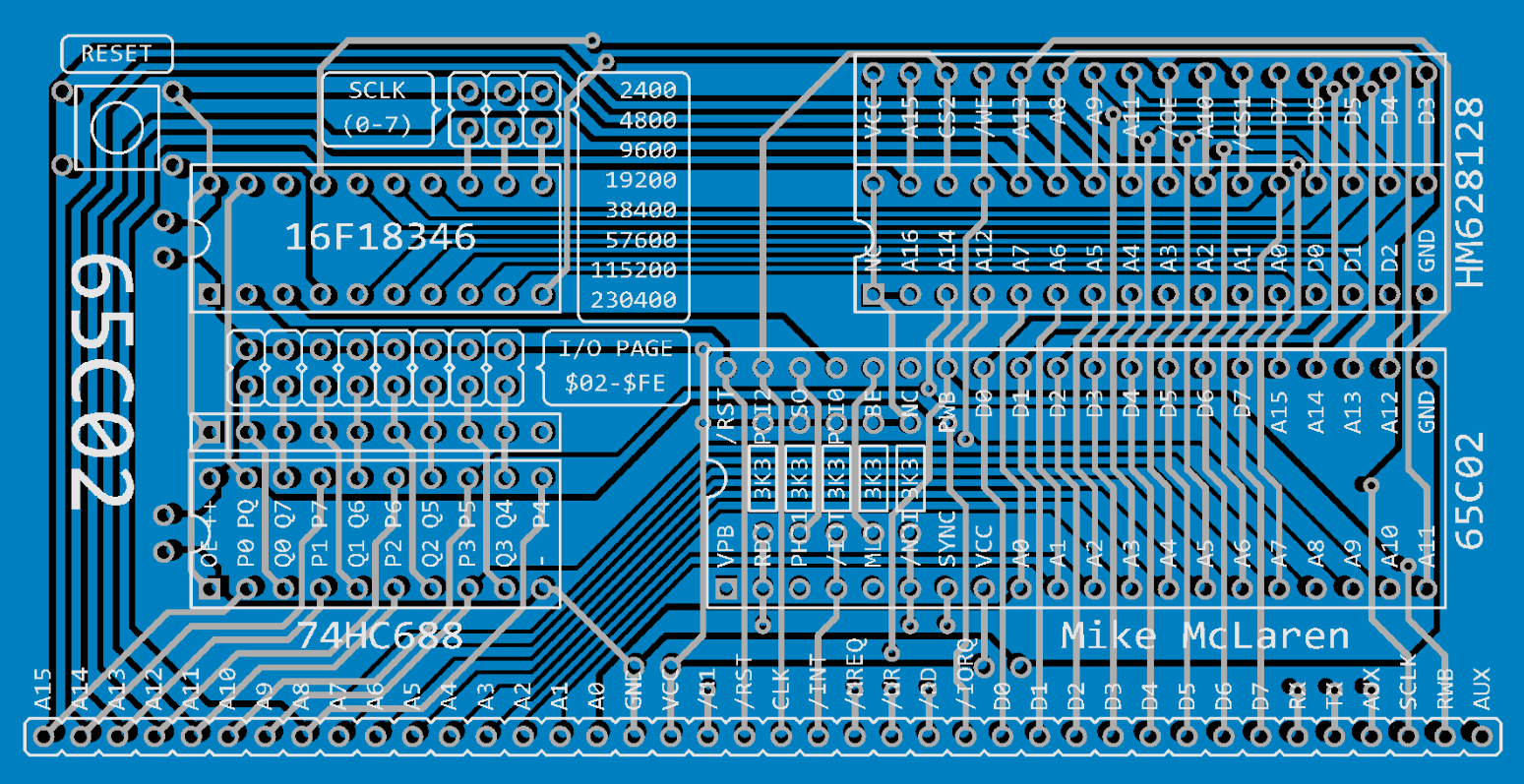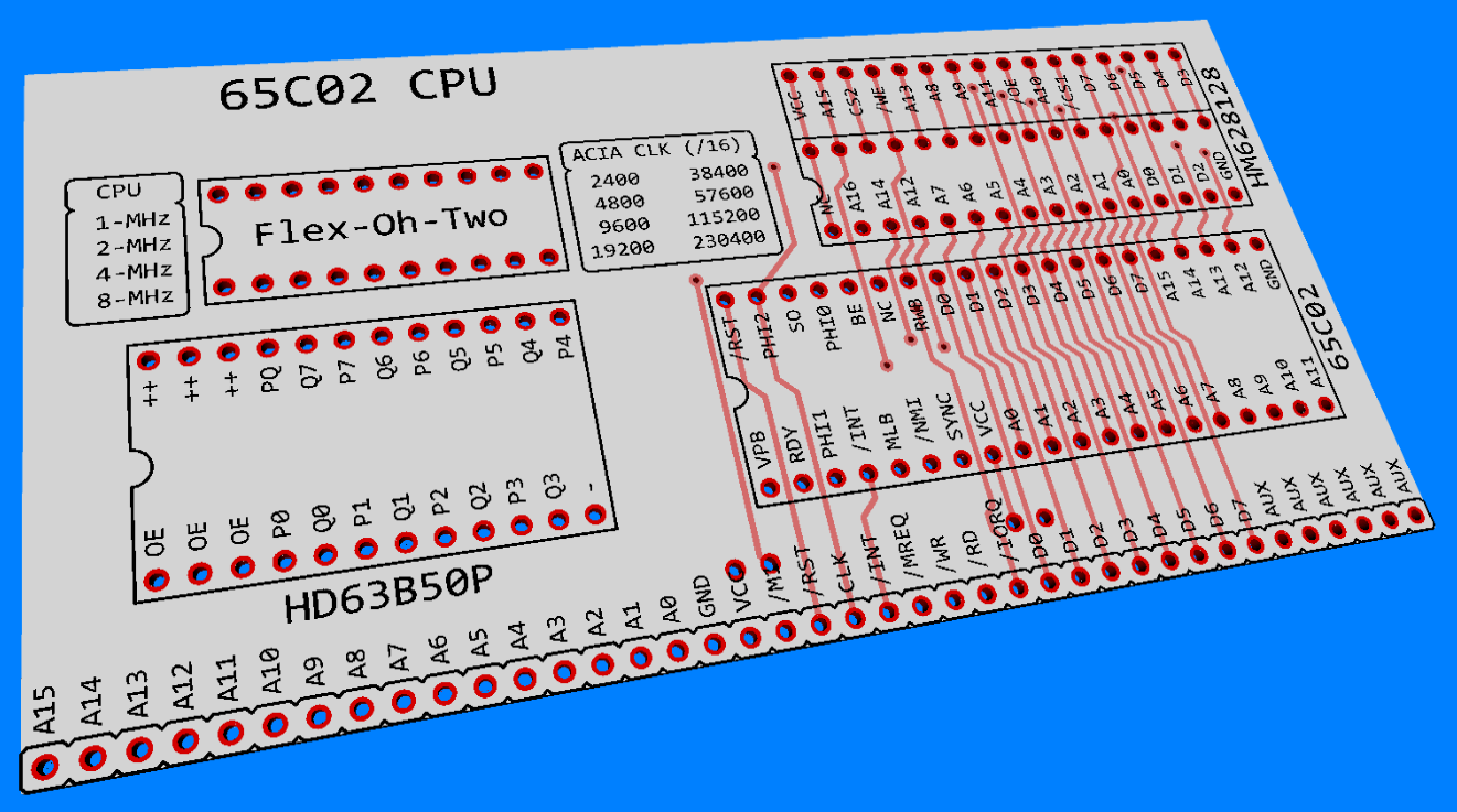 Yes, I noticed the violations (grin). Most of Grant Searle's "Minimum Z80" computer was broken down into modules on a bus and you've re-integrated the separate clock and decoder modules into your 65C02 board design (grin).