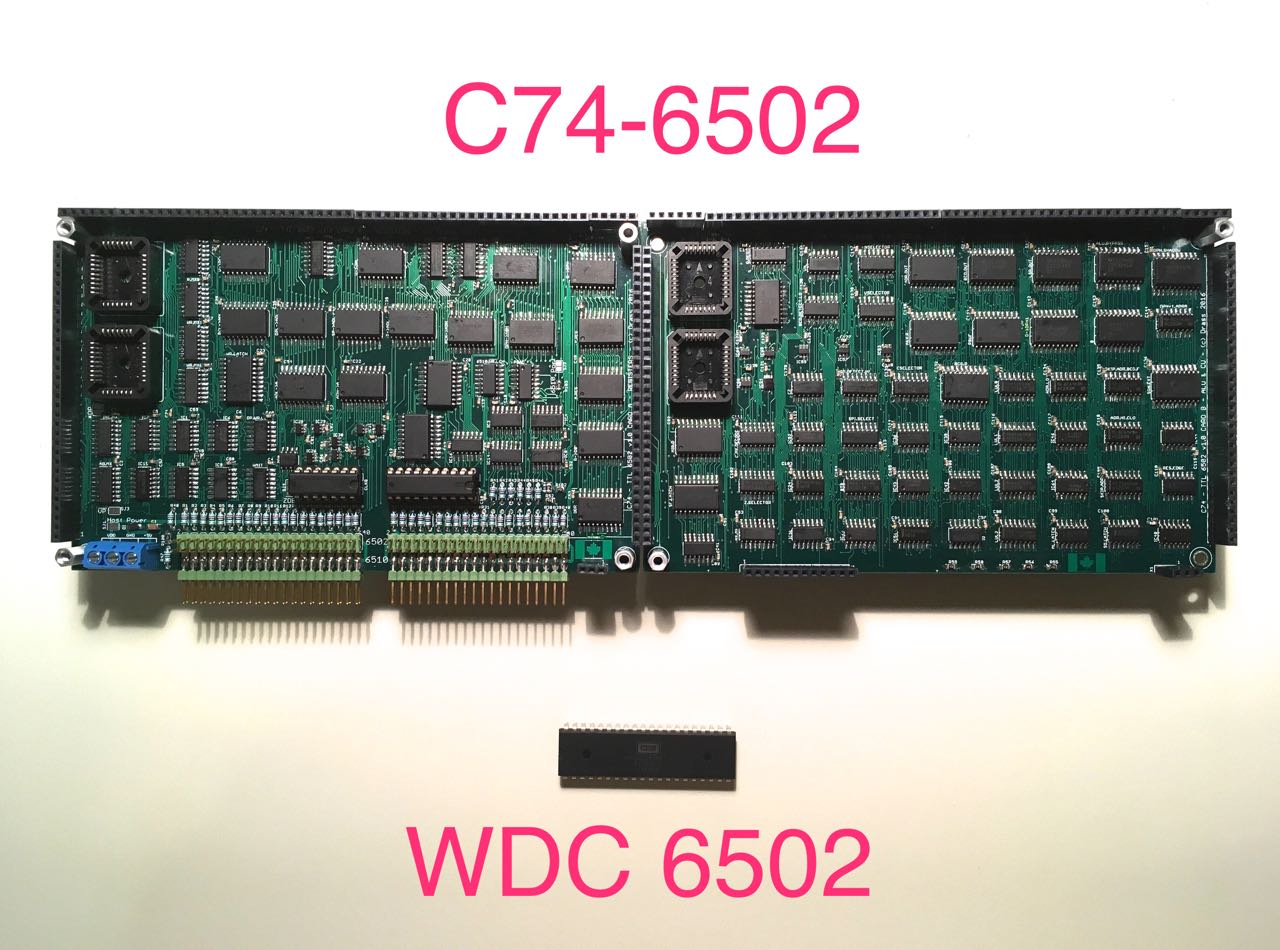 Card A and Card B now soldered, which together constitute a complete TTL 6502 (the third K24 card being optional). A real 6502 is shown below for scale :mrgreen: