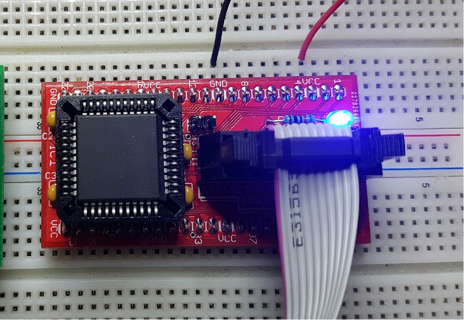 I can then use my Atmel (now Microchip) ATDH1150USB-K programmer/cable in conjunction with my adapter board to write the .JED file to the CPLD. The ATDH1150USB-K drivers are windows 7 & 10 compatible.