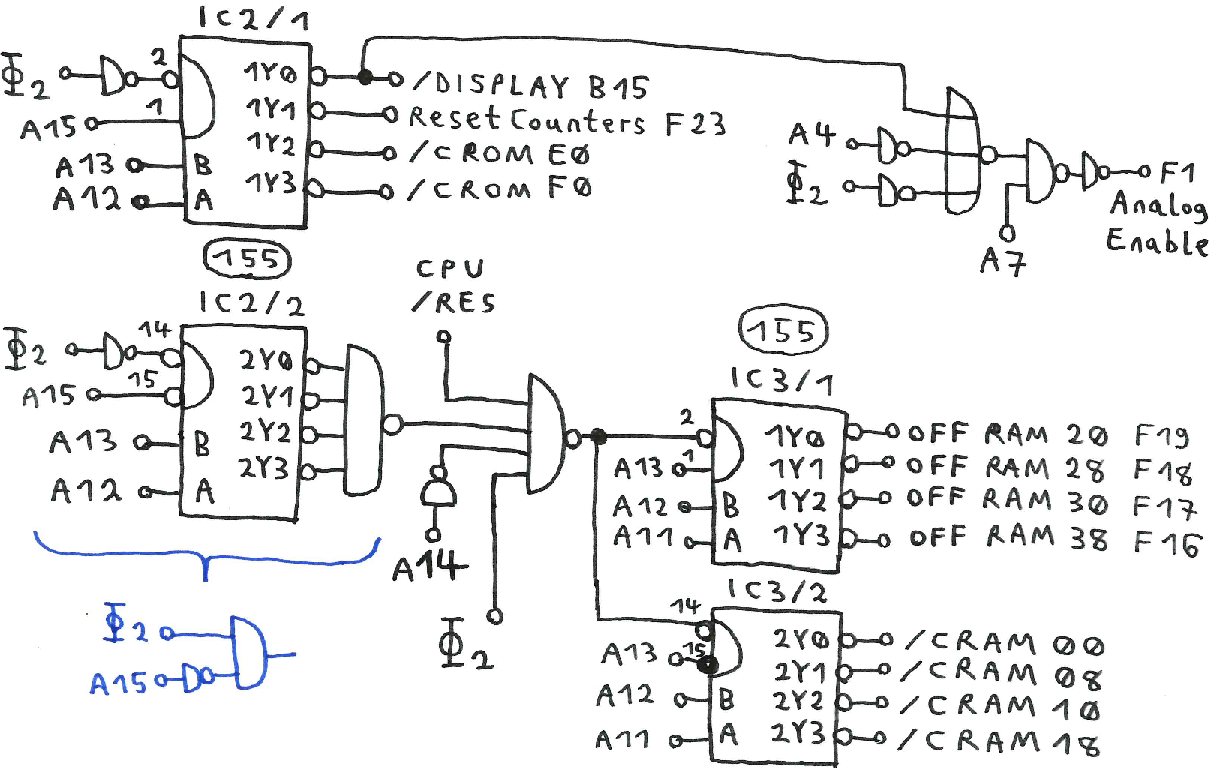 On another topic, here's something easy you can check, Sergio. The signal on pin 2 of IC9 should be much the same as the signal on pin 1 -- and likewise for every signal passing through IC9 and IC8. If any signal fails to reproduce then it could indicate IC7/8 defective, or a short in any of the six memory chips or the connections to their address inputs.