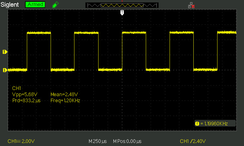 If you look carefully at my scope pictures you'll see that's actually 1.2k bps (aka 1200 bps), not 120k bps. The UART baud rate generator is in normal mode, not extended mode II. It just happens that 9600 bps is the same CSR value in both modes, which is why it worked. But the setting for 115.2k in extended mode II is actually 1200 bps in normal mode. I finally caught this while playing around trying to get 19.2k bps and wondering why the transmit clock was 200 Hz.