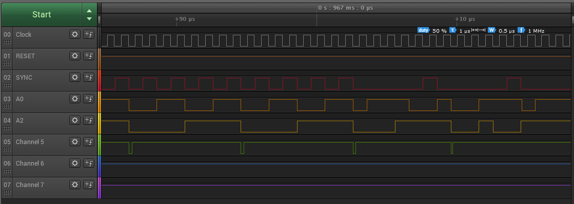 But look how curious: channel 5 of the logic analyzer was showing a signal. Being that this wire is not connected to any place. What can be happening?