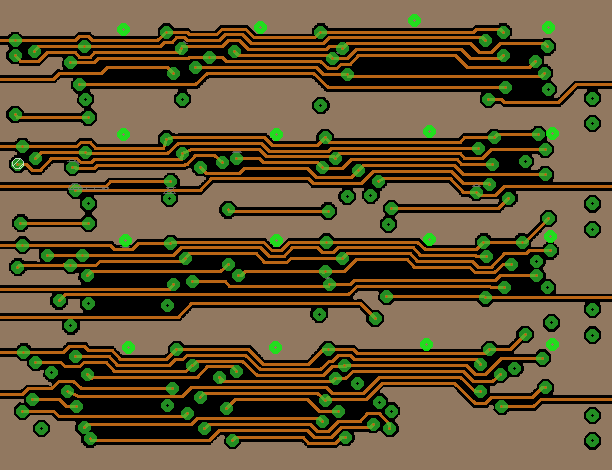 See for example the top layer bottom right. There are two vias close together, interrupting the flow of the ground plane. I don't like that, so I'll go fix things like that.