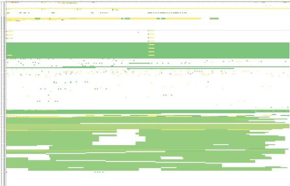 That's really the big picture - - a heatmap with all reads, each line of blocks a page. I can zoom in: