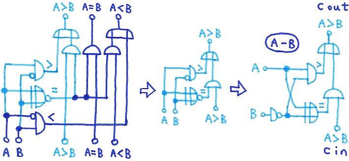 The light_blue marked part is the logic which detects A>B, and when re_drawing that part a few times,