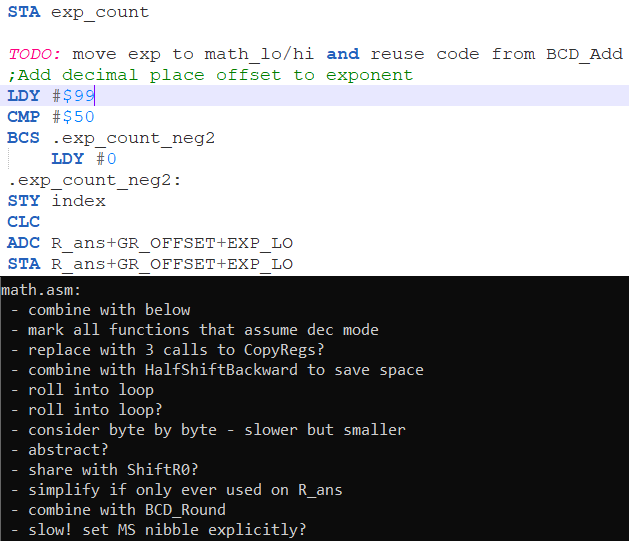 I decided to switch from a 4-level scientific calculator to one with a simple Forth-like interface similar to some of the later HP calculators. I added 2k of RAM to support this. Stack items are 9 bytes where the first byte marks the type and the next 8 bytes are data. There are four data types: