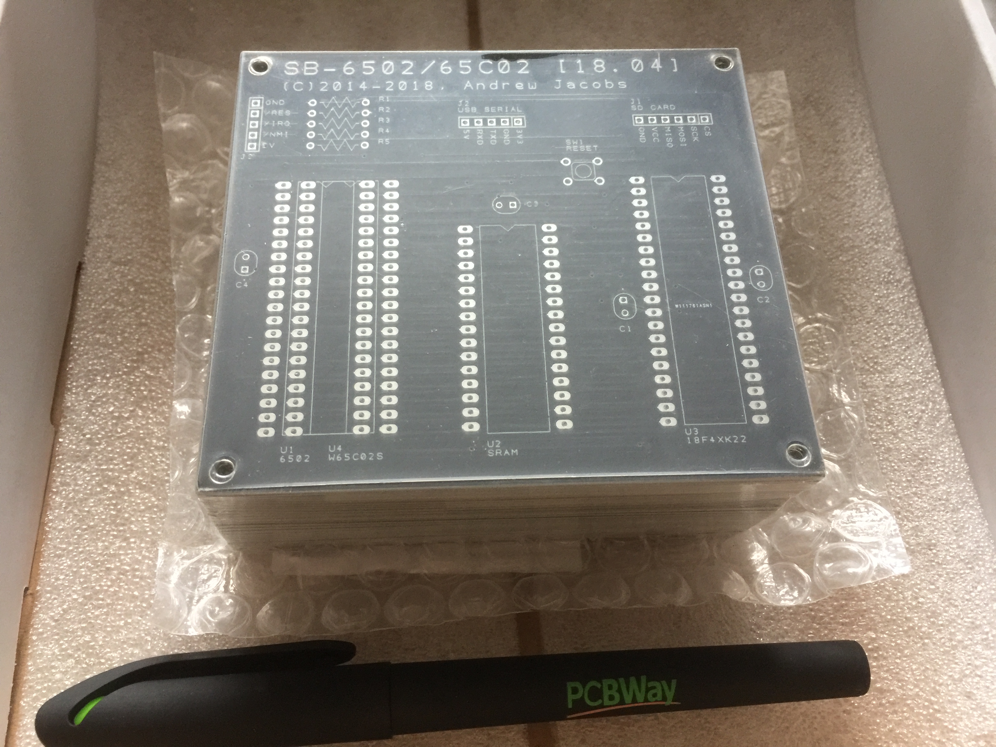 I’ve made a new version of my board (with a pull up on /SO) and slightly reduced in size to be inside the 100x100mm prototyping limit imposed by some board houses. I now have a trinity of devices to work with (6502, 65c02 and 65802).