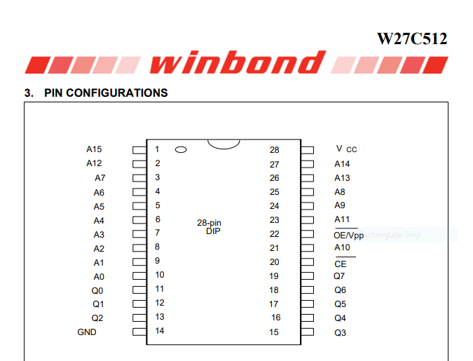 Now that I have tested my 6502 and having a basic knowledge of what's going on, I want to start adding some memory. I would like start with a ROM(EEPROM) for now coz' I don't have any RAM yet. I have a Winbond W27c512 EEPROM that i would like to start with. So the address pins of the W27c512 (A0..A15) goes to the address bus pins of the 6502 and the same with the data pins, correct? What about the OE and CE? I'm guesing they should held low? If so, why?