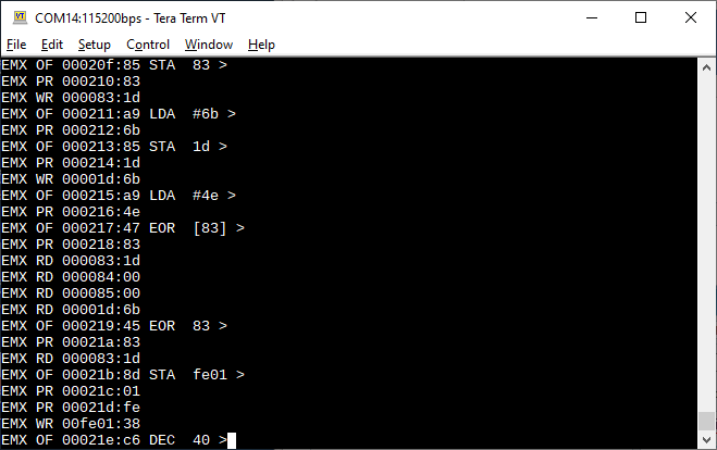The screens below show EOR [83] and mode switching (see EMX letters changing case) with 24-bit addresses and 16-bit data. Hope this will convince you.