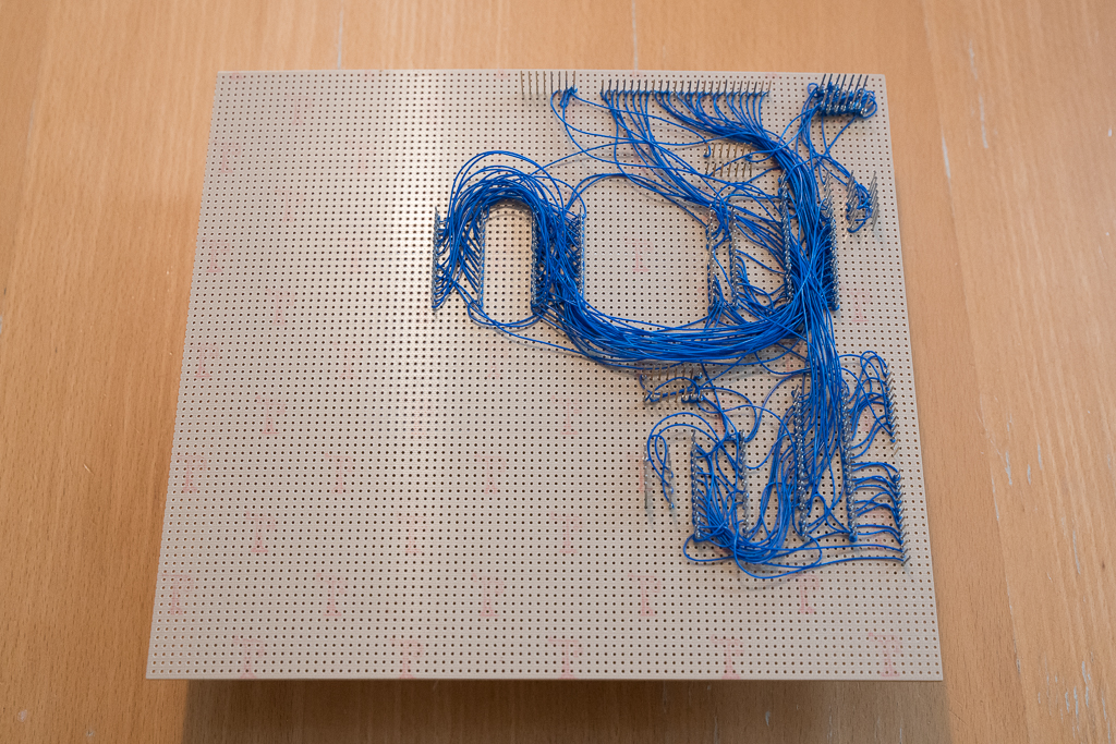 Initially I had all of the sockets "shoulder to shoulder", but I couldn't see what I was doing, so I spread them out. I may have spread them out more than I needed to. I would have liked to keep the wires much shorter. Also, I don't know if I should have tried to route the wires more directly, but I think routing them the way I did made it easier for me to see what was connected.