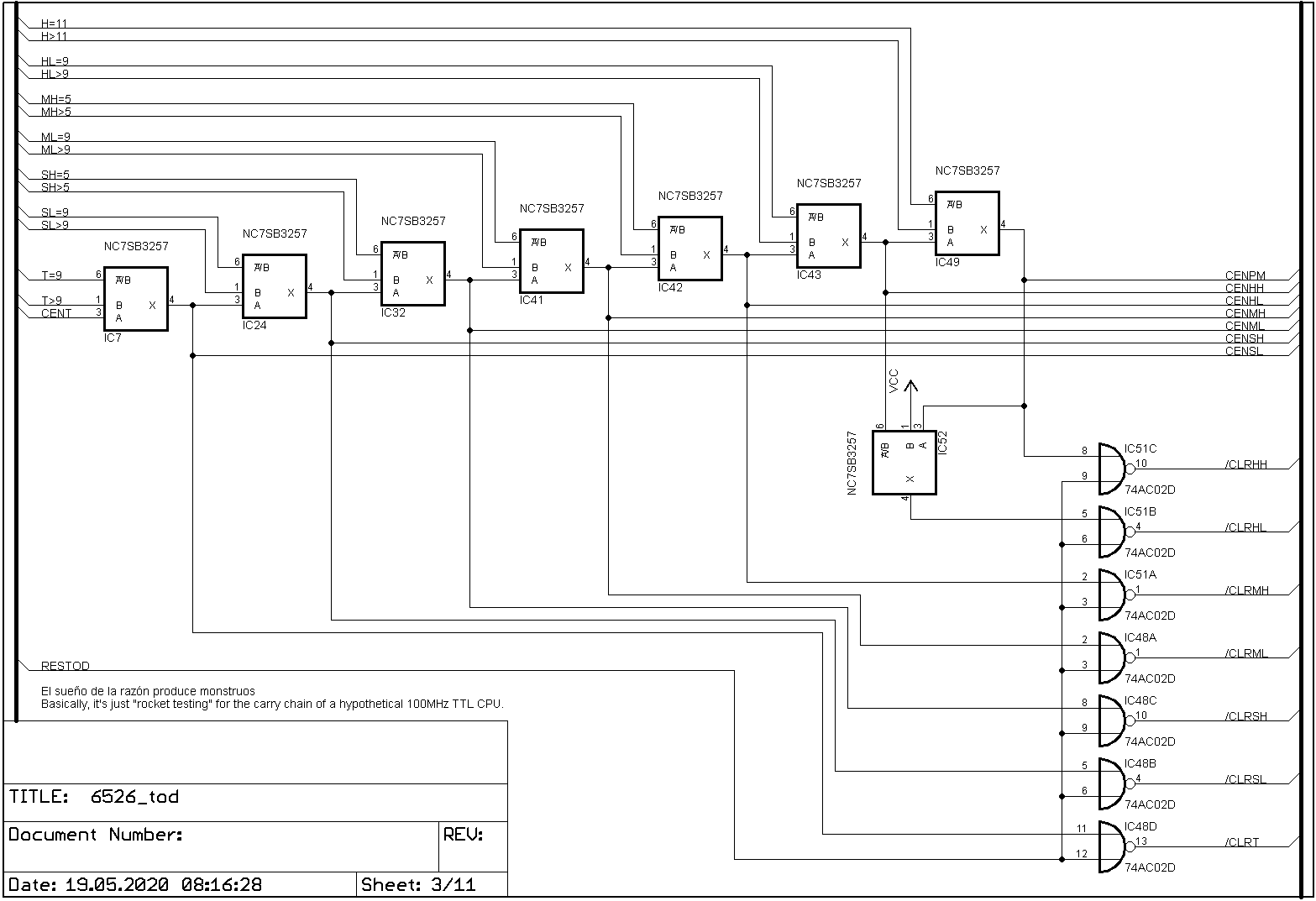 one PCB contains what I think should work as TOD. //It's also a "test balloon" for the carry chain of a hypothetical 100MHz TTL CPU.
