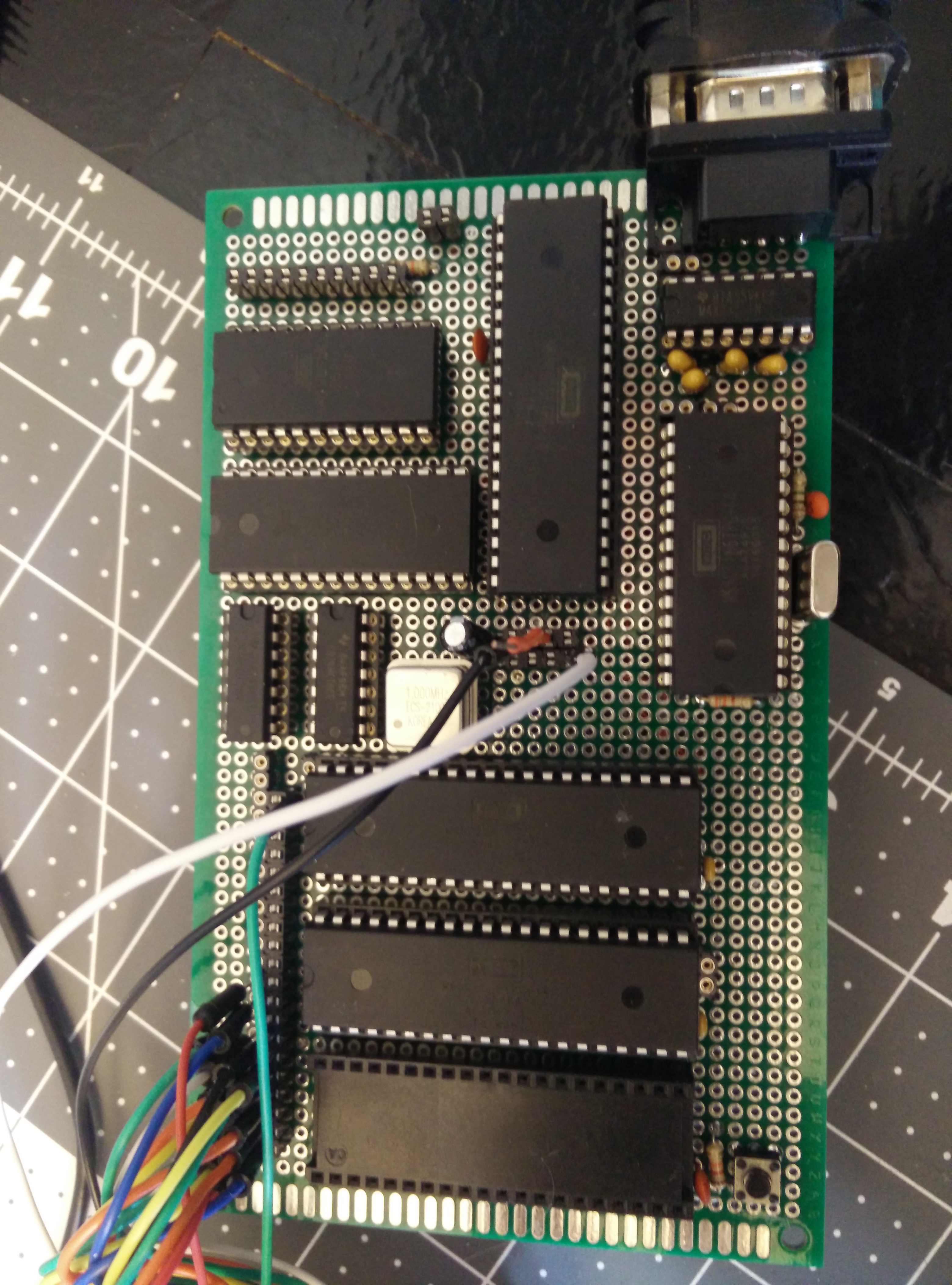 Attached photos show my result. All components are down and most of the connections are wrapped. There is a main board with header for expansion boards. The first expansion board has an AY-3-8910 sound IC and an LCD display. The jumper wires between the boards are an unfortunate mistake. My DIY ribbon cables worked well enough in breadboard holes, but don't securely fit the wire wrap pin header I used. One of my short term priorities is to replace all that with nice ribbon cable connectors, like these: https://www.digikey.com/product-detail/ ... 4G-ND/9709