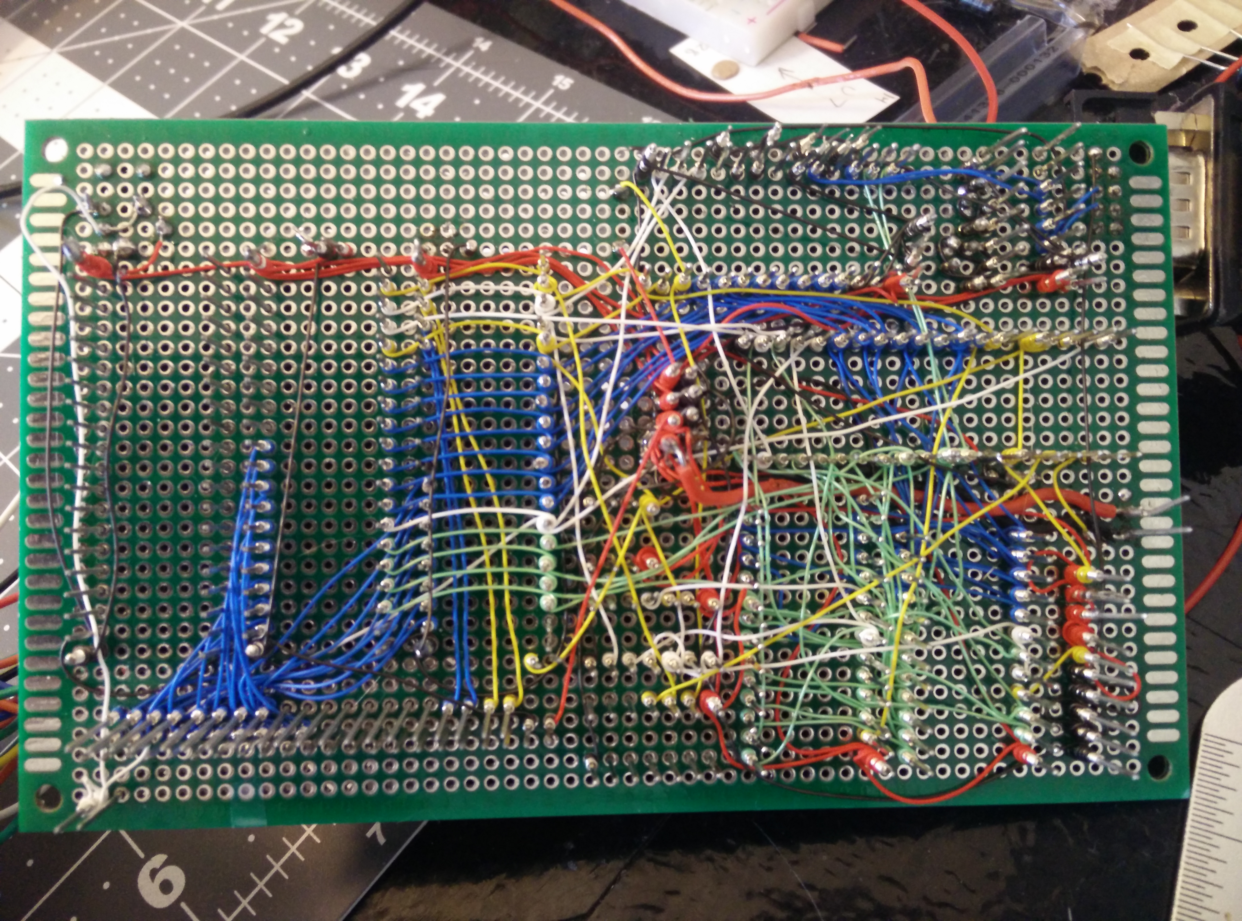 After spending a couple weeks writing code for the machine and testing some sound generation ICs, I realized the hardware configuration was stable enough that I should move it off the breadboards. I've never made a PCB before and spent some time experimenting with board layouts in KiCad. I ultimately decided I wasn't ready to move to PCB, and decided to wire wrap a board instead.