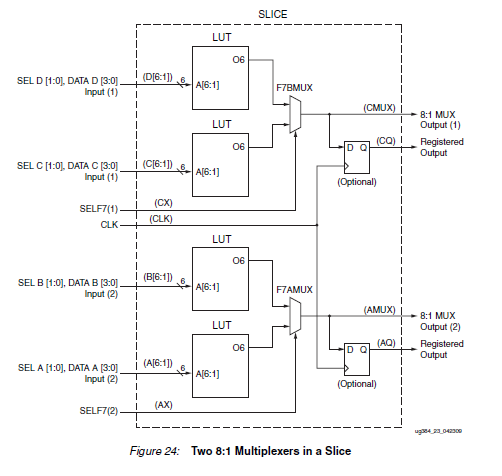 Now, we can put 2 LUTs side-by-side, and evaluate both branch-taken, and branch-not-taken cases in parallel. The outputs then feed into a dedicated F7MUX inside the slice, which is operated by the condition code.