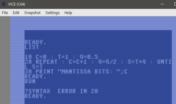 DEFSNG uses 6-digit significands which is I think is a more fair comparison to other MS-BASICs and seems to produce the same visual output. This takes 413.37 seconds, a 21% improvement, which puts the MSX machine between the Commodore Plus/4 (MSX1 being 15% faster) and the Commodore 64 (MSX1 being 7% slower).