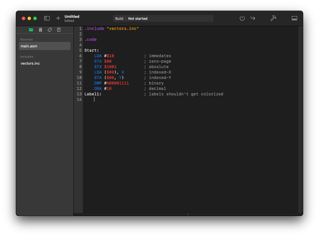 Does anobody here know a syntax highlighting editor for the 6502 assembler? I'm trying to use gedit with the following language-specs file: