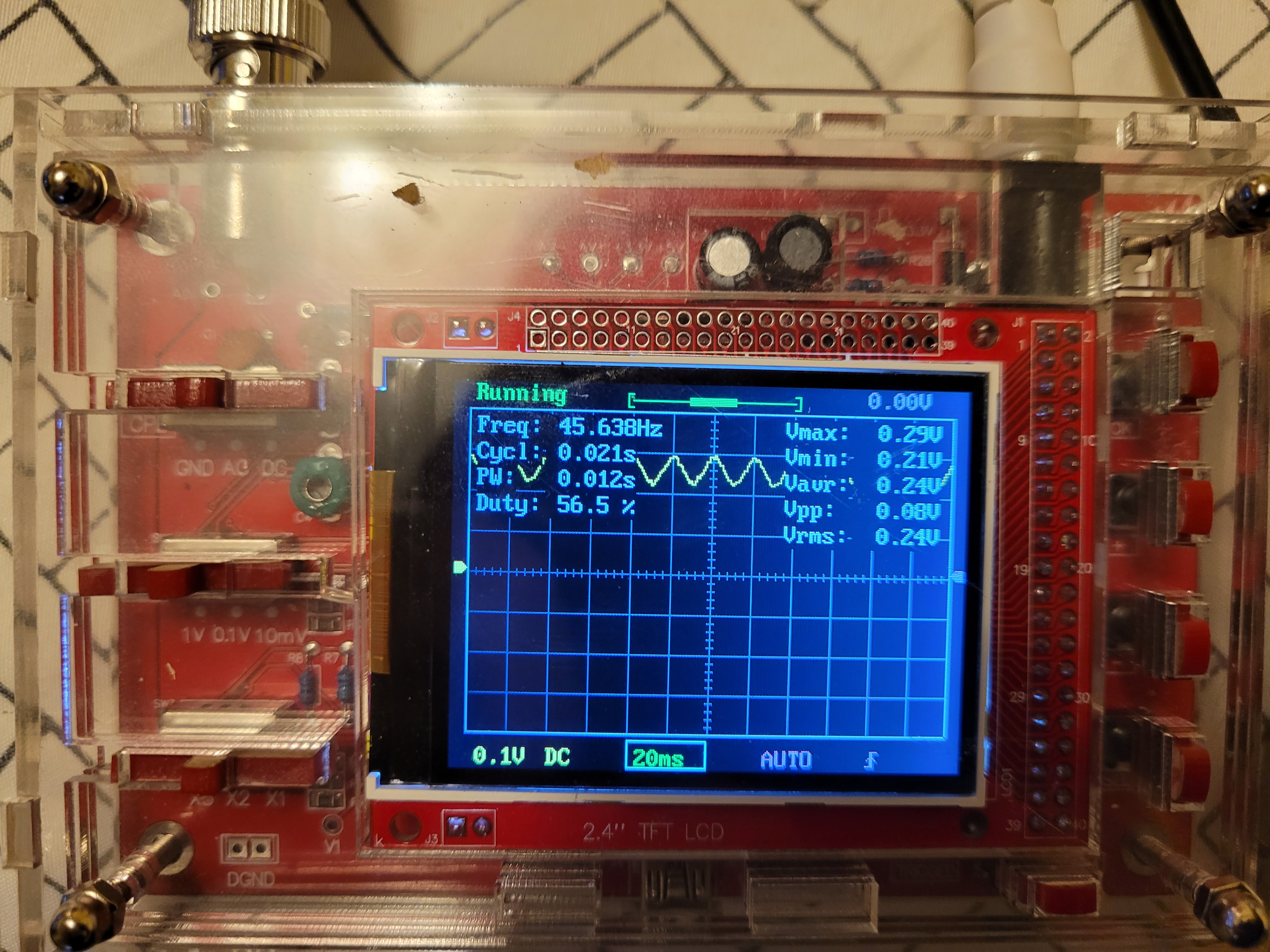 So, I can either use the scope for checking pulled address lines, or the meter for checking the oscillator outright (if it can,) or I can purchase a slower crystal.