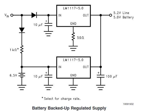 The National Semiconductor datasheet for LM1117 has this reference circuit with a battery: