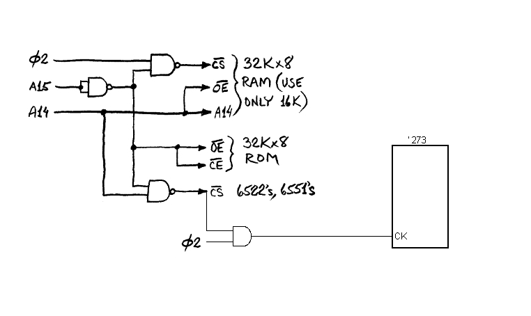 [*] 6502 and 65C816 (but not 65C02) can in some circumstances do a spurious read from an address other than one that's been explicitly coded, and this can in some circumstances cause trouble -- for example if you take my suggestion and eliminate the "wasted" gate. :roll: I mention spurious reads only in passing. Suffice it to say the effect is rare, and both hardware and software remedies exist.