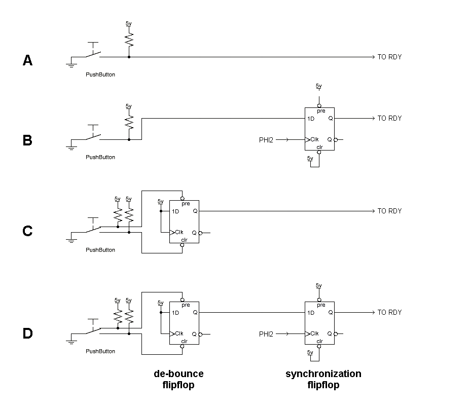 Having said that, if it's just a human activating a pushbutton once or twice then odds are good that the transitions on RDY won't occur during the critical time. So, it's a reasonable gamble to hope the CPU doesn't crash. And perhaps a crash would be tolerable anyway, in the context of Photoman's experiment. You can always run the experiment again, hoping as you say that the CPU will successfully pick up where it left off.