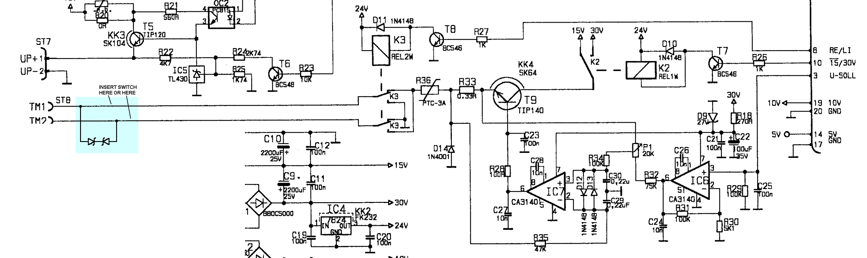 I did try to break in to the control but of course its not that simple. I have attached a pic of the schematic for the driver.