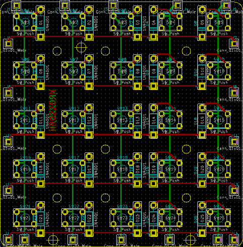 - XR0230/N (untested, but I'd have to be a complete moron to get it wrong): 5*6 staggered keyboard tile. This variant also uses Omron switches with 18mm spacing but is not compatible with 2*2 Lego bricks due to the use of triangular packing.