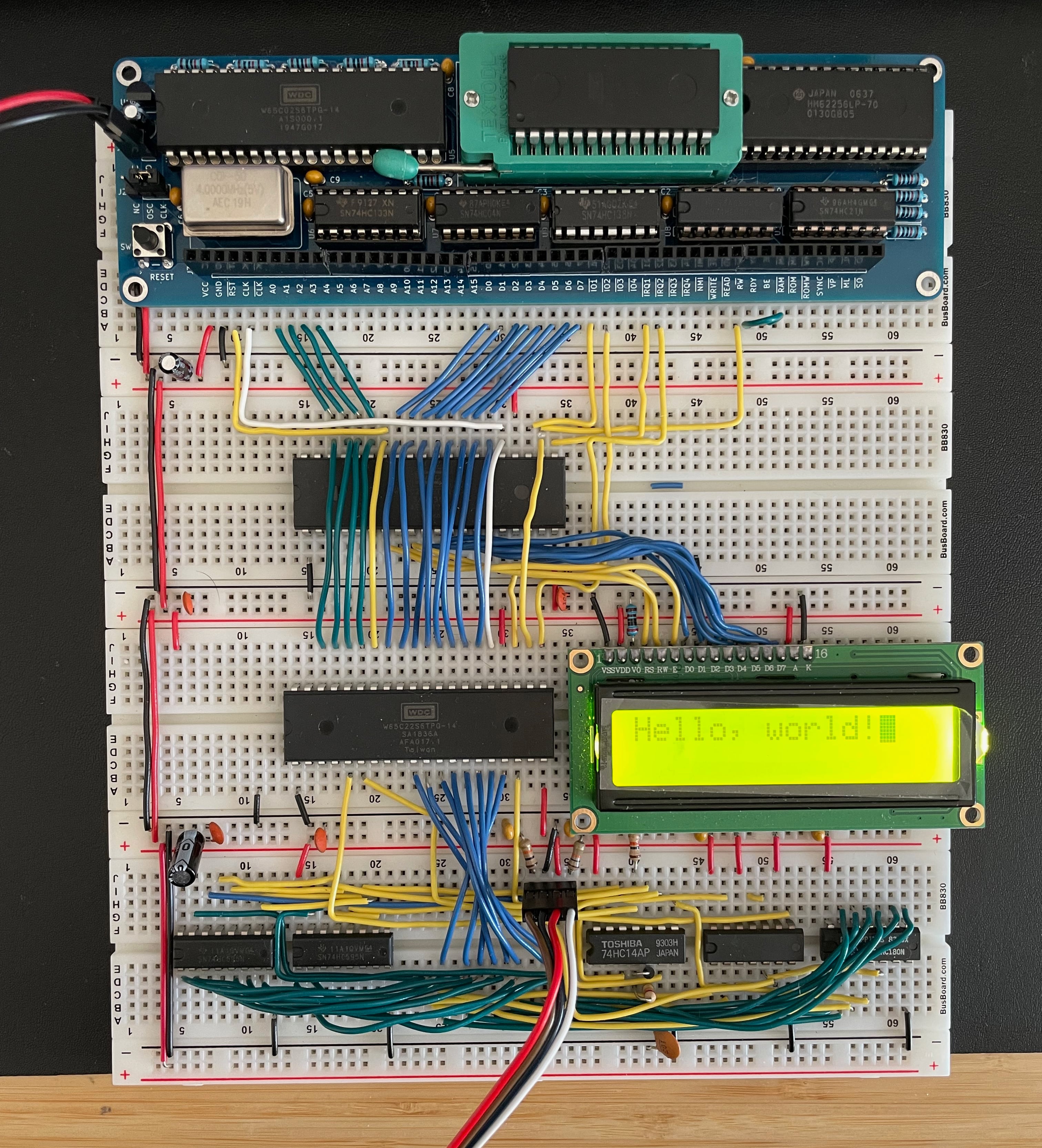 - It is still using pin headers to plug into the breadboard, but this time only headers, not sockets, and with rearranged pins (don't need the full address bus, added the VIA ports instead)