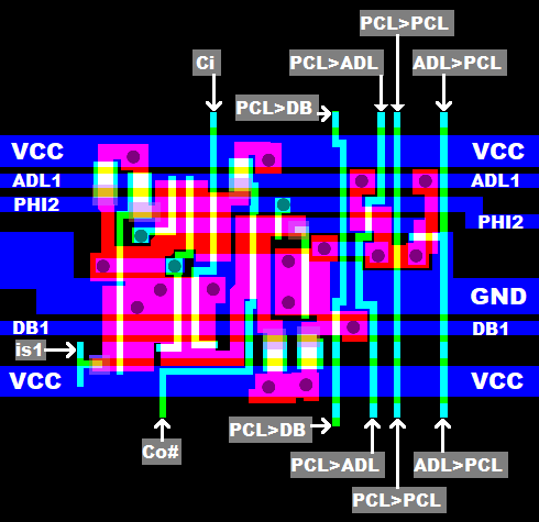 Actually, PCH counter cells (PC Bit 8..15) are East from "13) SB<>ADH transfer switches",