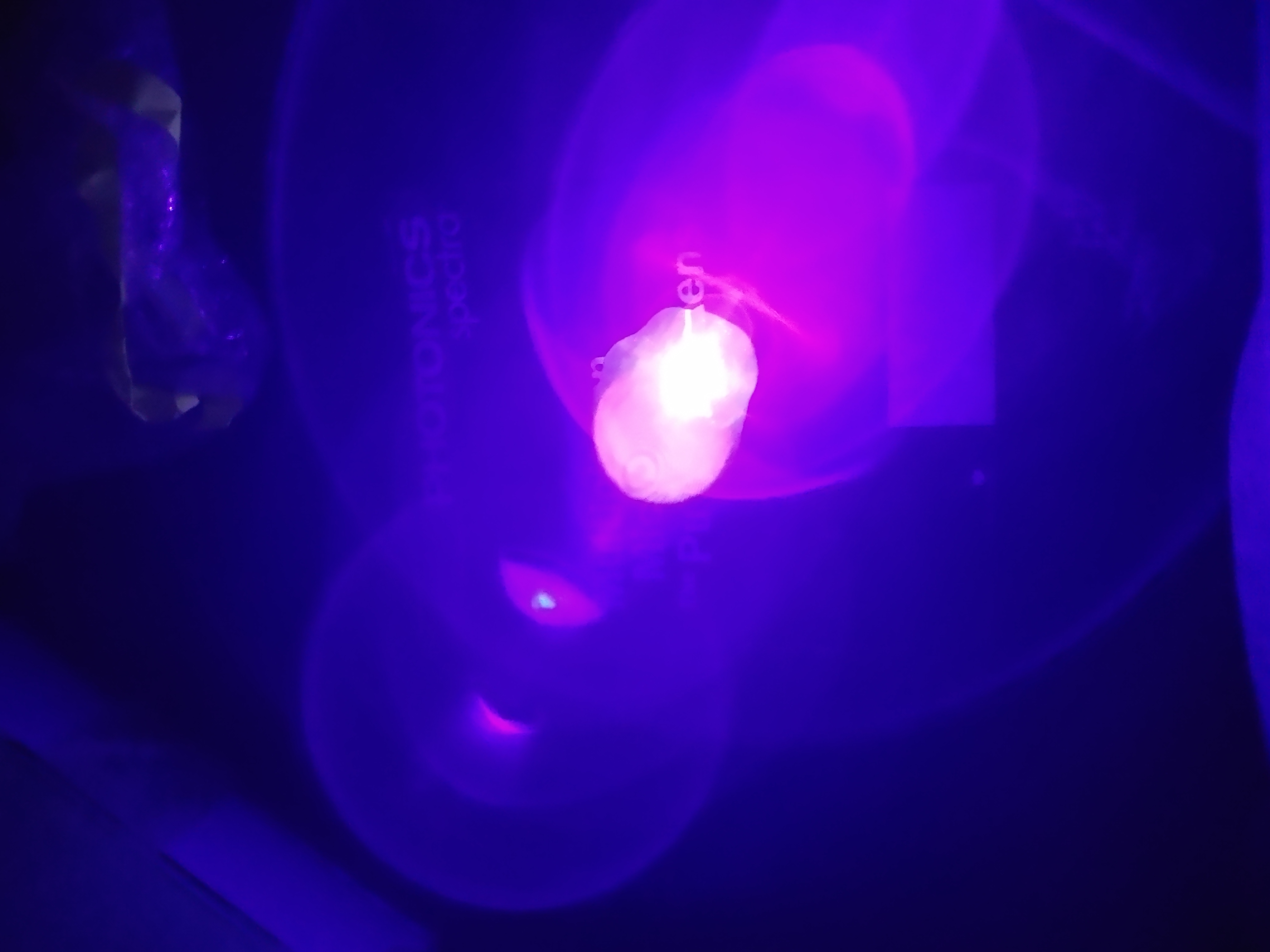 My B laser ( purple violet? Listed 405 or 410 nm) seems to have significant portion in the UV? Or maybe my glowey-putty (the kids?LOVE it !) responds to blue/violet light too?