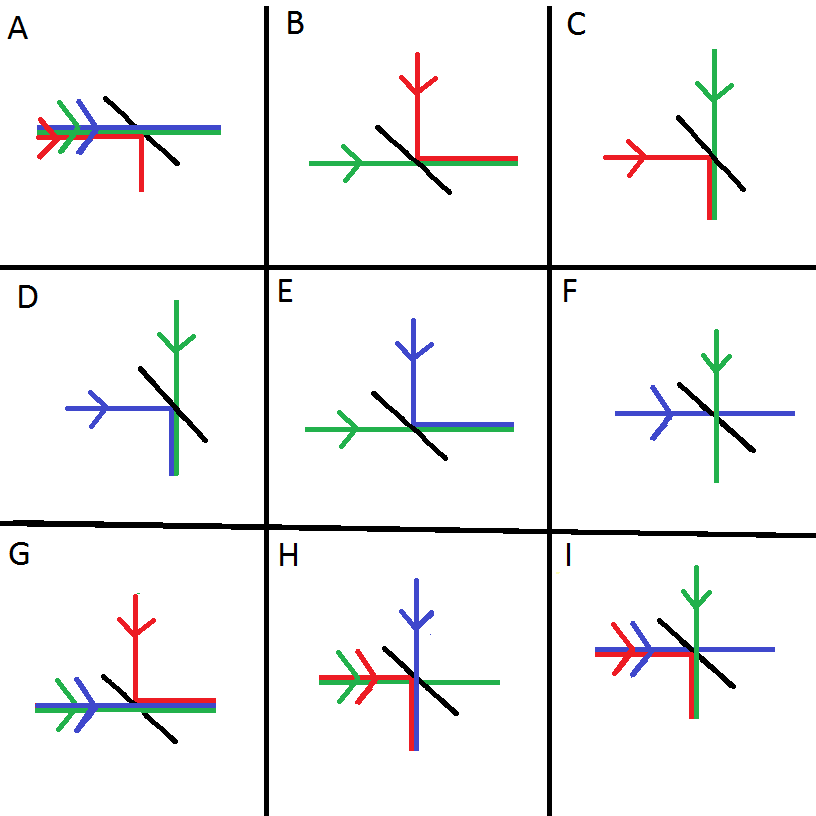 Logic available with dichroic mirrors, in their simplest arrangement.