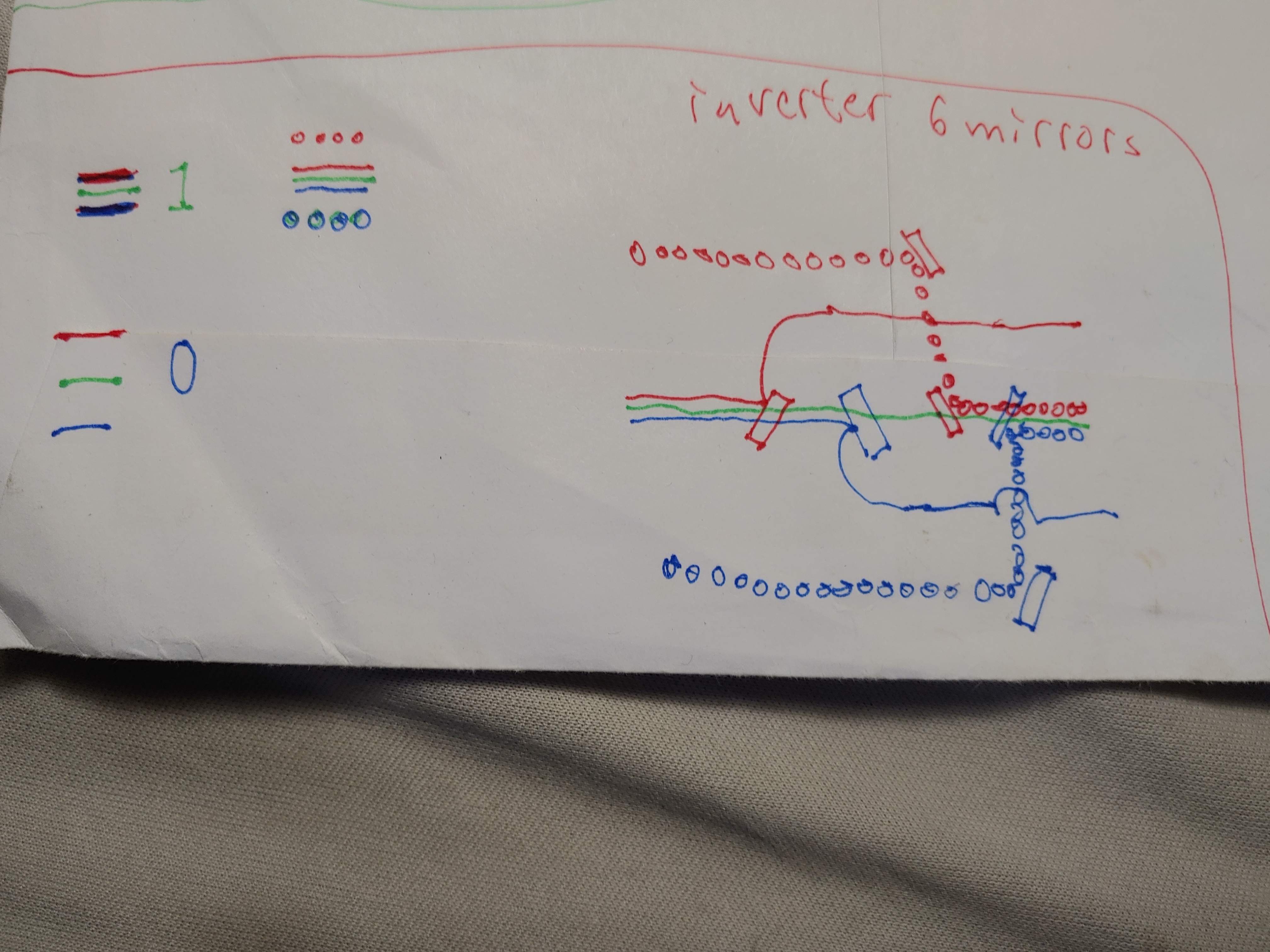 I had an epiphany a month or two ago. Having acquired some Fiber Optic Image Conduit. ( hereafter, FOICs) and 3 color laser pointers ( RGB), and a few dichroic mirror filters, I resumed where I left off 5 years ago, thinking about how to implement the logic.