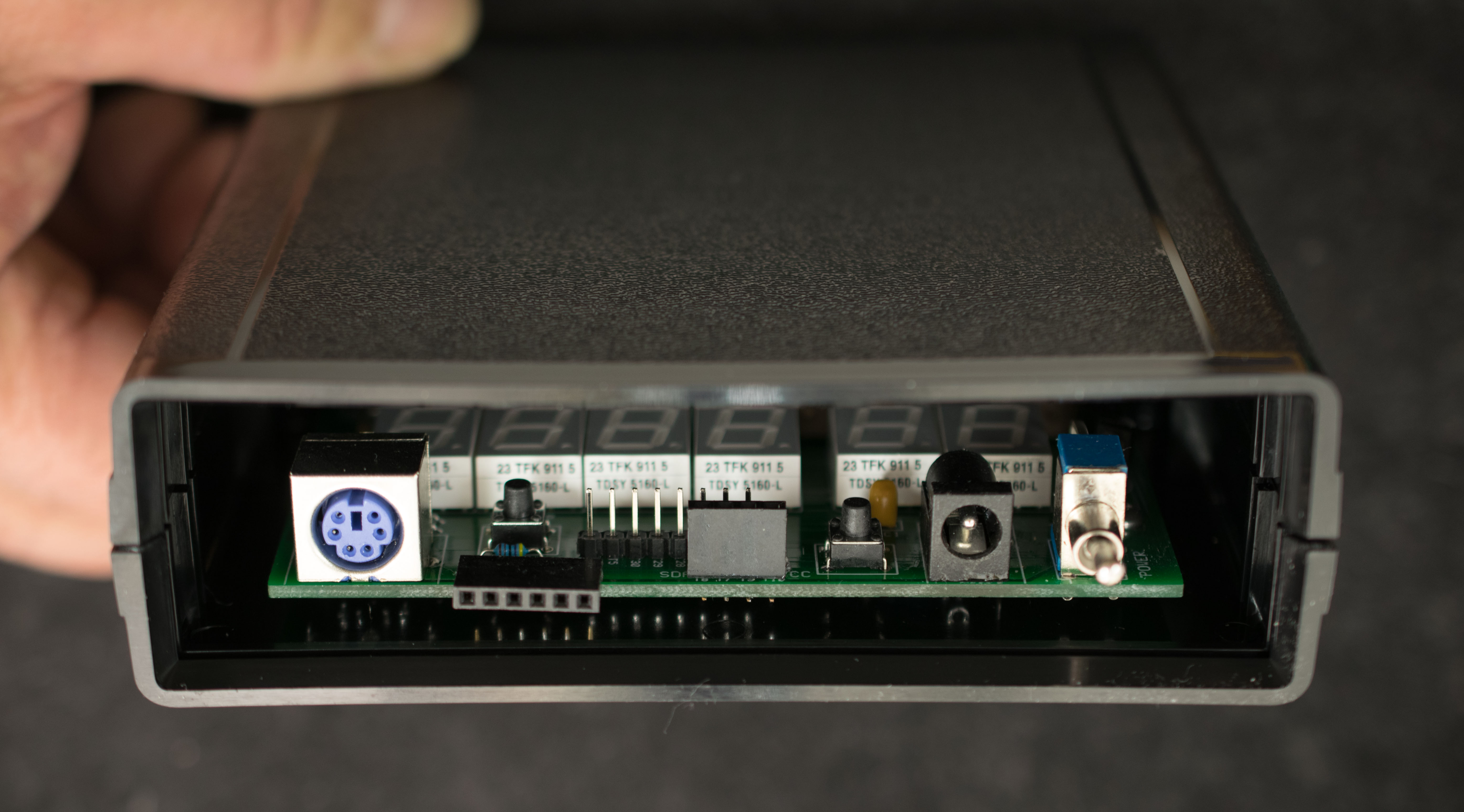 The CPLD+6502 trainer is now a functioning 6502 SBC. The nominal clock is 7.37MHz. It does run at 14.7MHz as is. With faster SRAM and 1 wait state EPROM I am able to run it at 25.175MHz which will be useful for an application later. Right now it will stay at 7.37MHz. I soldered in rest of the connectors and put it in a PacTec CM5-125 enclosure. This is wrap up the development phase of the CPLD+6502 Trainer. I have a number of applications for it, but I'm taking a short break to tackle other projects.