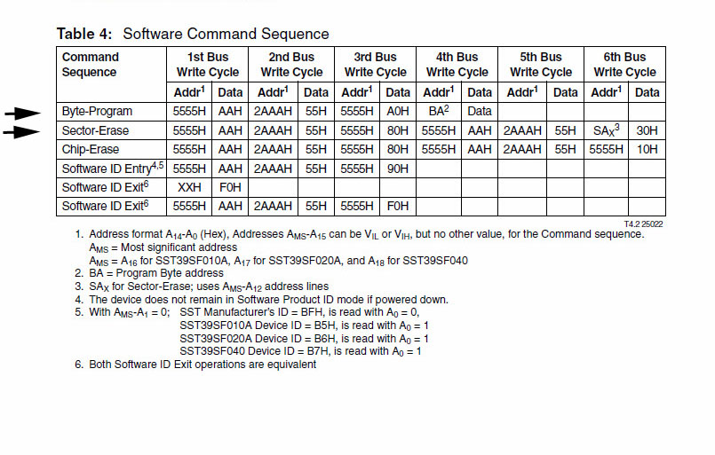 While moving a SST39SF010 flash from TL866 programmer to CPLD6502 trainer, I inadvertently inserted the chip backward and damaged the flash. This incident makes me think about an in-situ flash programmer as the first project of CPLD6502. In-situ programming means the flash can be reprogrammed without removing from its socket; furthermore, a blank flash can be programmed from scratch. This is not meant to be a general purpose flash programmer. I just want it to program the inexpensive Microchip SST39SF0x0.