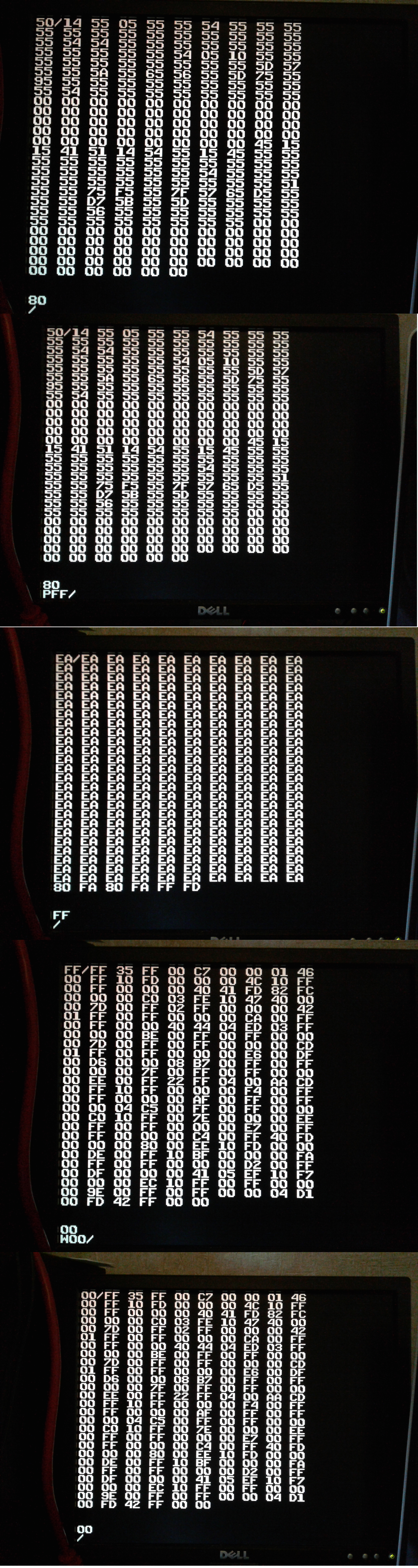 I can't fit 16 byte values on a line, but 8 bytes per line would not show the entire 256-byte page, so I went with 10 bytes across each line for counting purposes. I have been thinking of doing a WozMon style monitor, but this one was VERY simple to do.