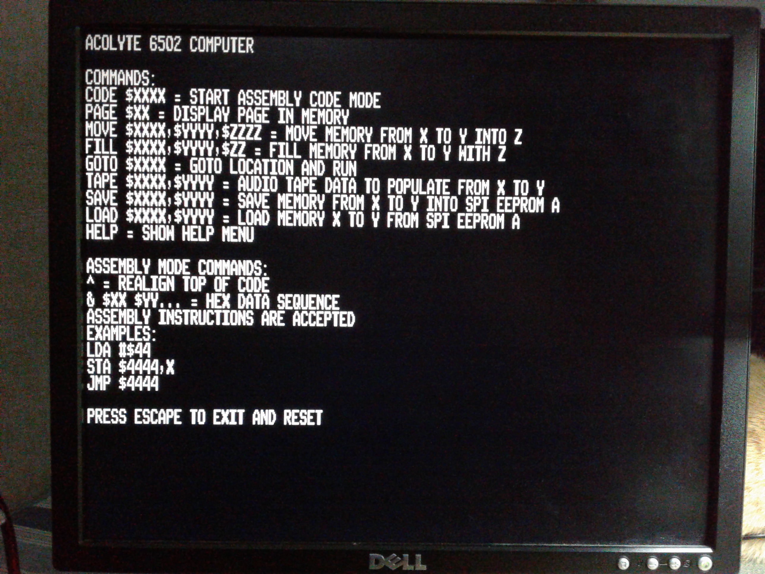 I'm back to present a MUCH better 'monitor'. I don't know if I'd call it a monitor at this point though. It is closing in on an 'operating system', maybe just an 'assembler', definitely a replacement for BASIC.