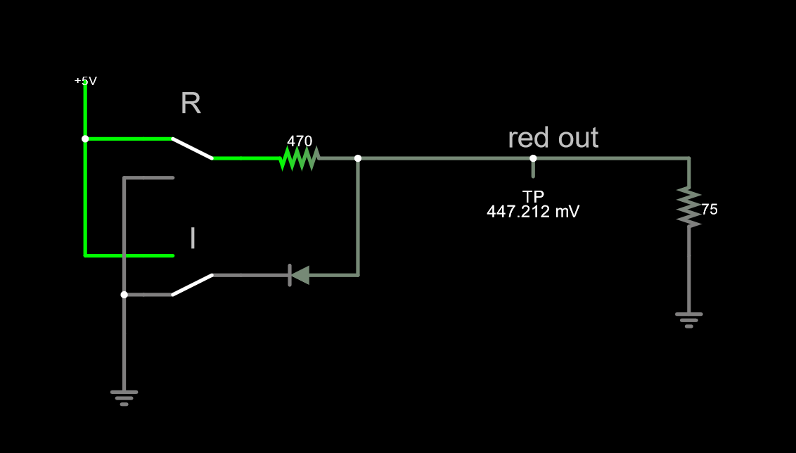 Sorry my link is full of silly extra switches. I have 7 shift registers going into these 3 colors, and I have to account for all the extra grounded values. 330 ohms total is the sweet-spot for each of my three 'color modes' it seems, so I change accordingly.