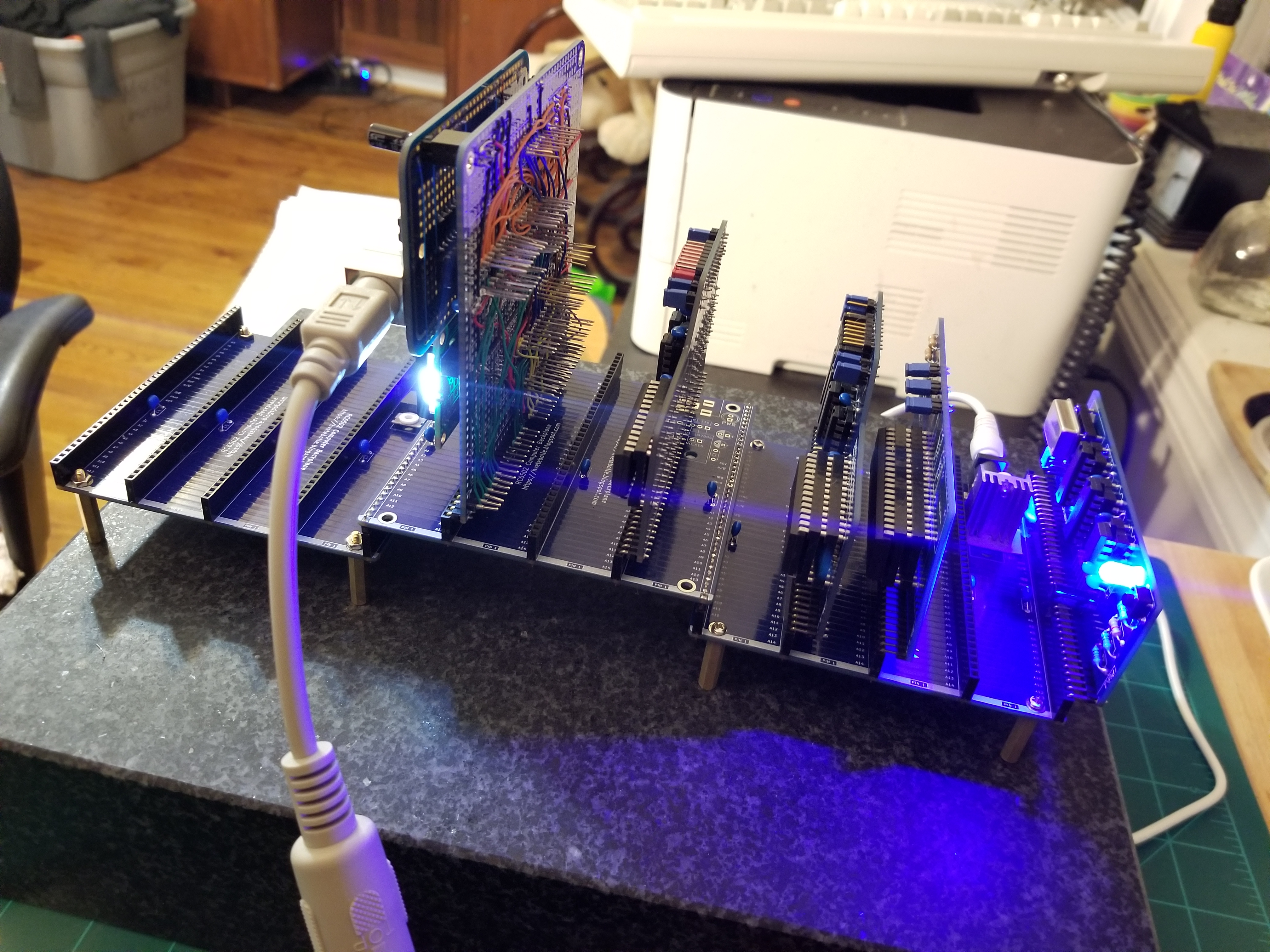 Yep. :) TEBL made a kind of bridge connector for extending the backplane, but it took up two bus slots and only provided one. I figured rather than making another PCBWAY order, I could just make a third backplane and solder on some upside-down male headers. Sacrifice two bus slots to gain three. Also the front backplane module can be swapped out for the RC Project Platform board - that's the one with the half-breadboard and 6522 on it.