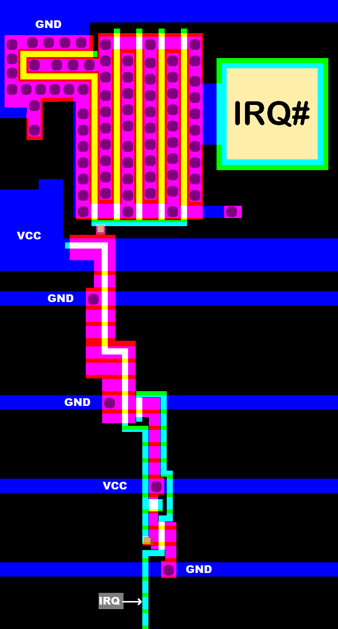 so an external pullup resistor is supposed to be placed between IRQ# and VCC.