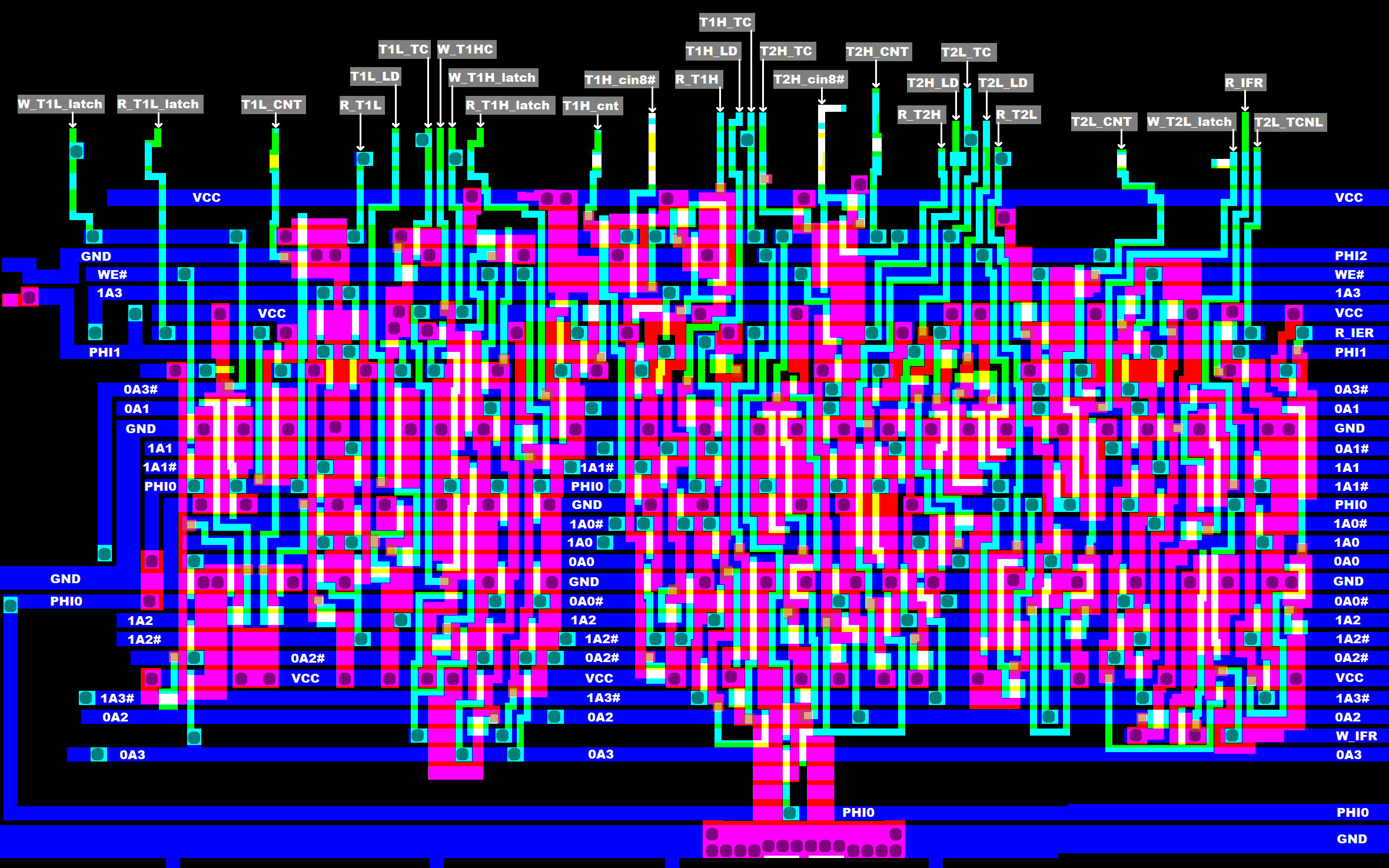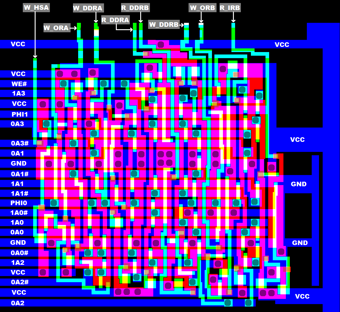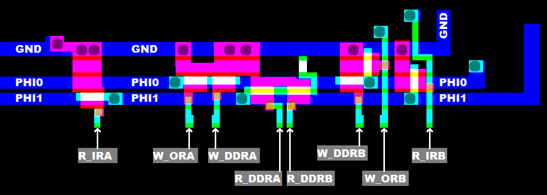 BTW: John McMaster has microscopic pictures of the MOS 6522 silicon here.