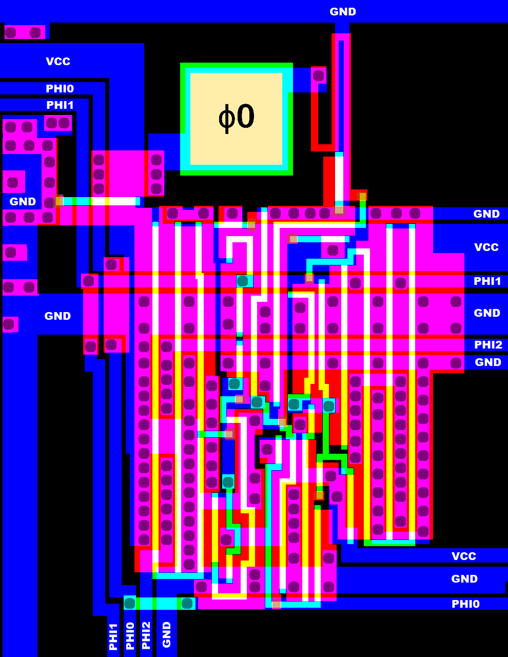 Basically, the signal from the A0 pad is sampled by a fully static transparent latch at PHI1,