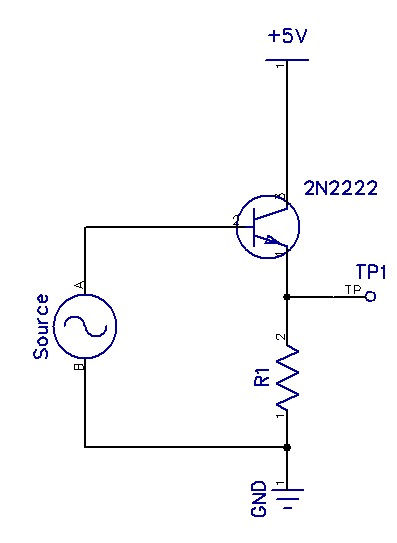 Just an emitter follower. Driving the base through a 360ohm resistor with a 47ohm resistor as the load connected from the emitter to ground and the collector tied to 5V. My WFG sucks. That's the best square wave it can do at 27MHz. Someday I'll have $1000 for a decent one.
