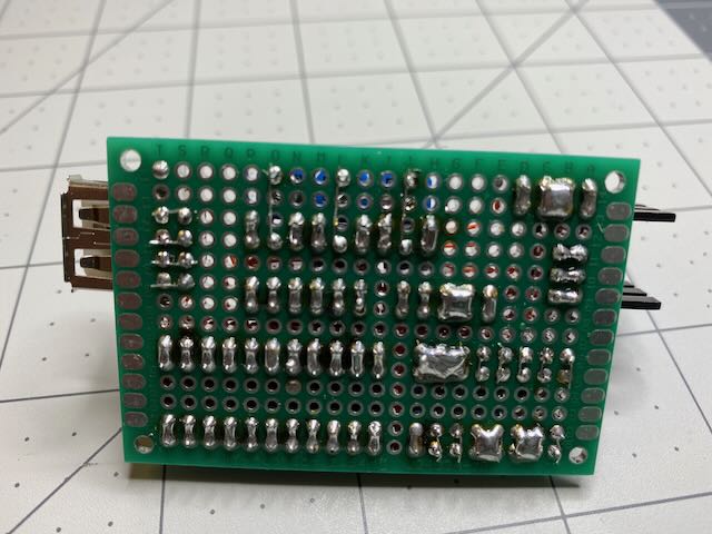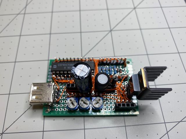 I really can't complain; this works really well and is rather sturdy, and I can still swap out each component and rewire the whole thing pretty easily. Even though I'm using 30ga wire, nothing heats up appreciably even with half an Amp of load on the output (except that one time that I wired in the USB port backwards. That caused… fireworks. Thankfully I was driving it from a wallwart and not from my PC).
