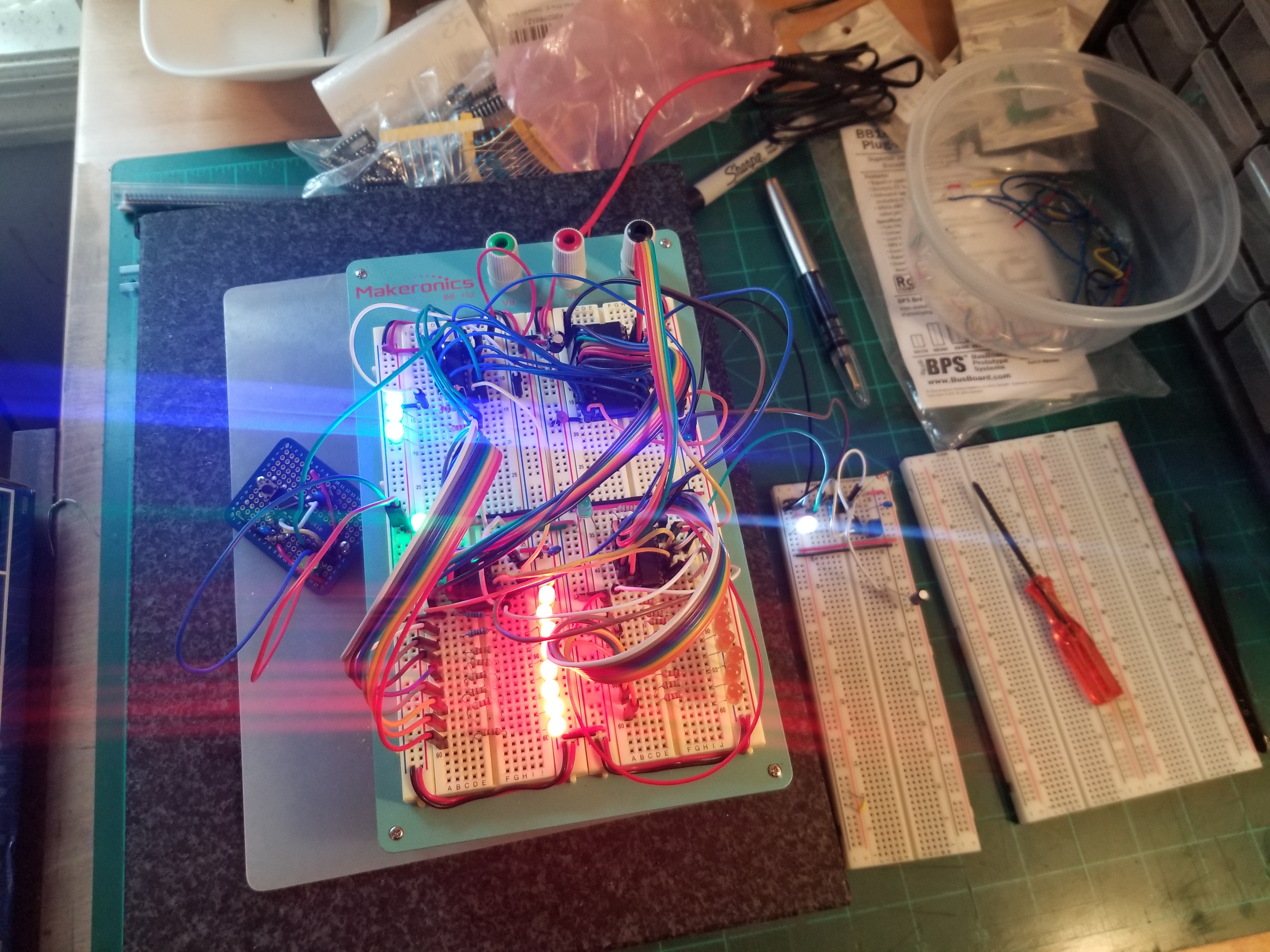 On a luthiery forum I sometimes read, one of the contemporary master luthiers says "it's a poor workman who blames his tools... because a good workman doesn't have bad tools!" So in that spirit I decided to upgrade my breadboard situation before returning to my video timing project. I got the cheapest aluminum backed breadboard I could find ($20 on Amazon), switched out its low quality Chinese breadboard with my nice Jameco one, upgraded its extremely flimsy banana jacks with some nicer ones (I also had to give it taller legs to make room for the new nice banana jacks!) and got a 5v switching wall wart for it.
